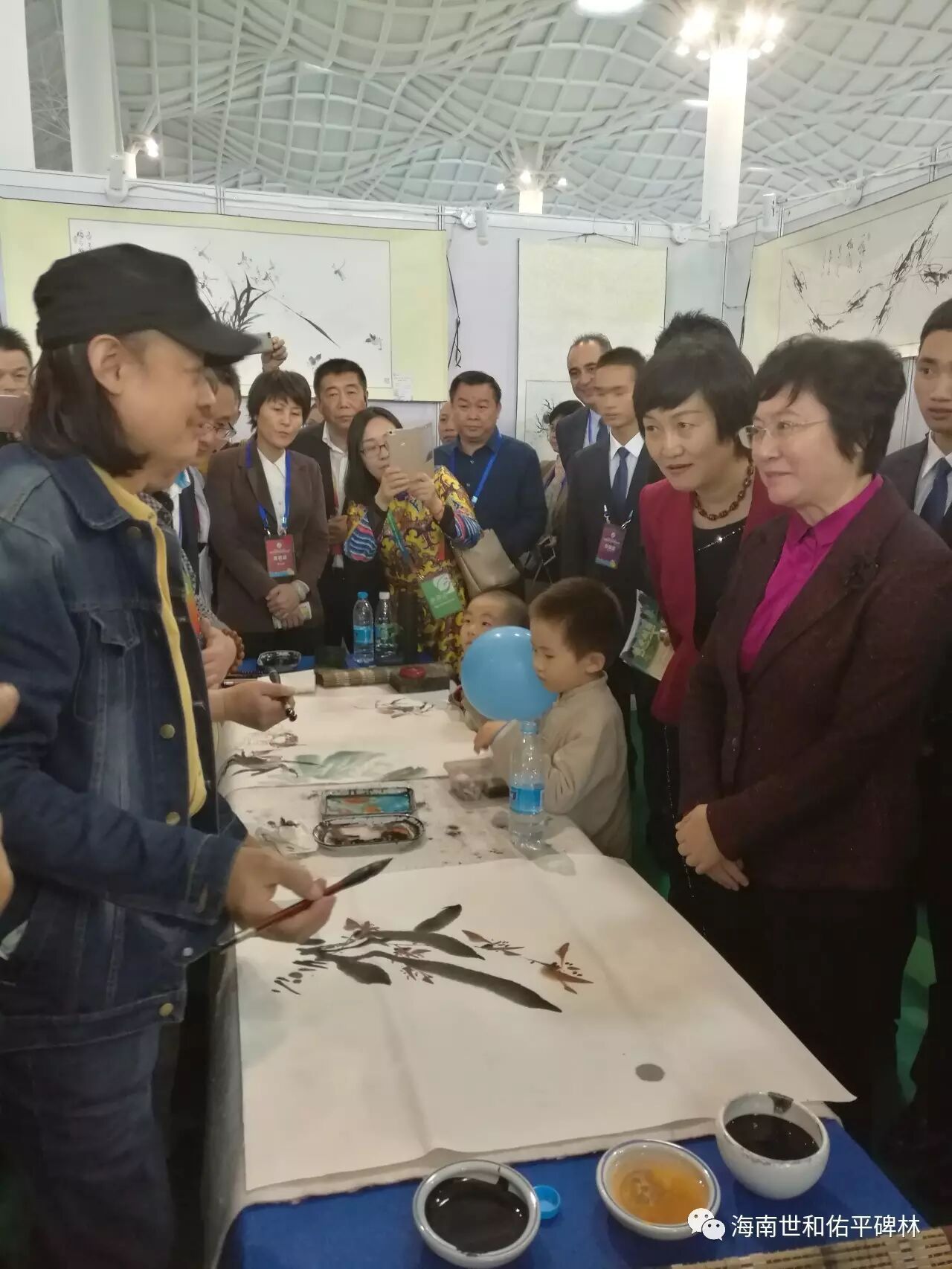 何副省长又走到了现场泼墨画荷花的著名设计师、国家一级美术师,画家邢灵敏大师面前时,大加赞赏:“您是海南发展的见证者与建设者,海南的发展,建设需要你们!。”