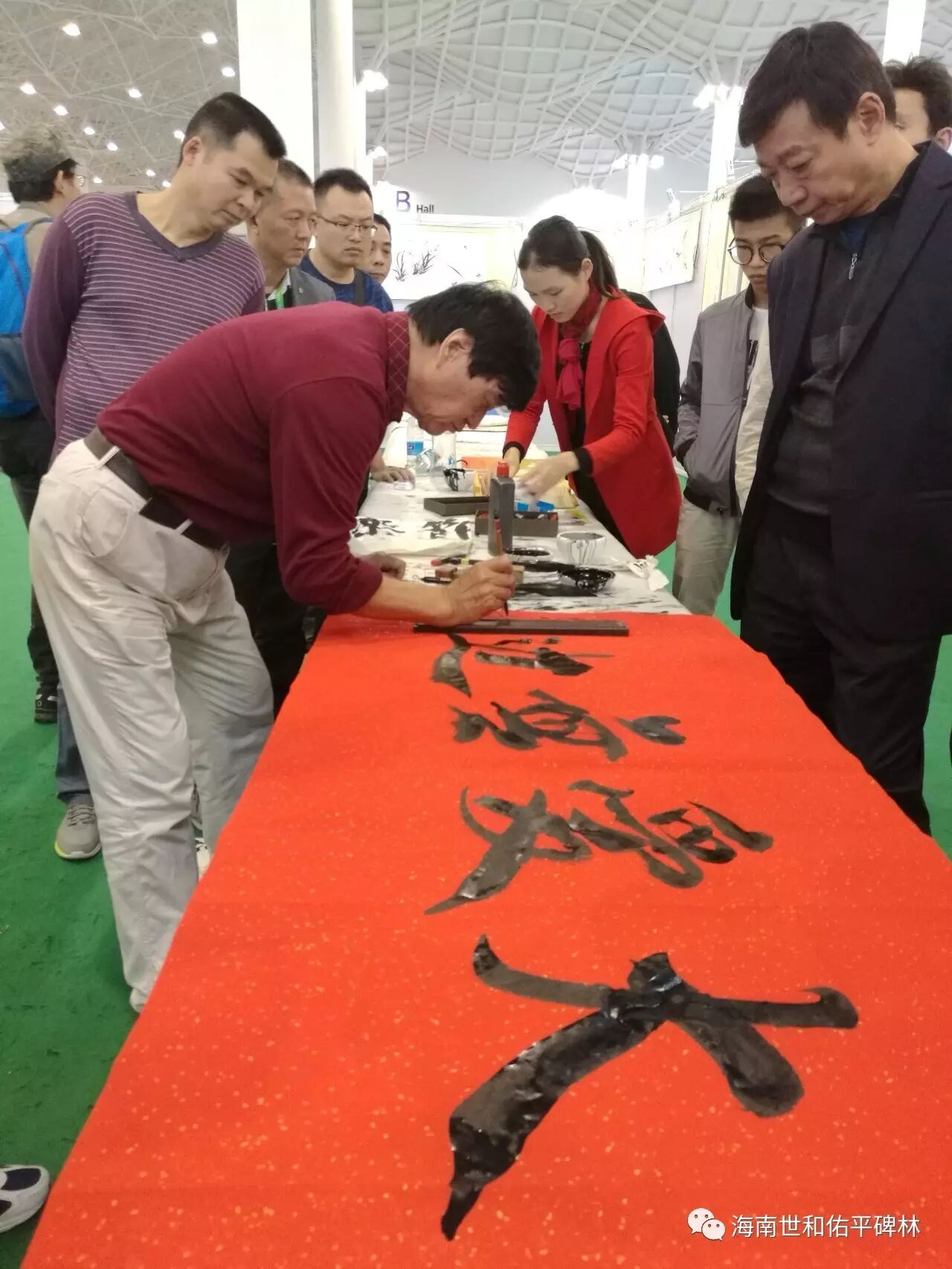 图为李廷轩先生在书画展区挥毫现场图为国际书法家李廷轩先生、青年书法家杨惠雅女士在书画展区挥毫现场